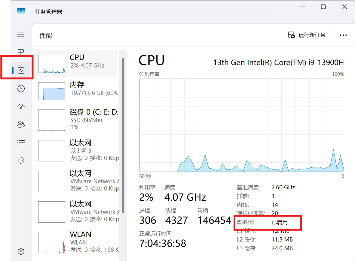 查看右下角 虚拟化 是否为 已启用