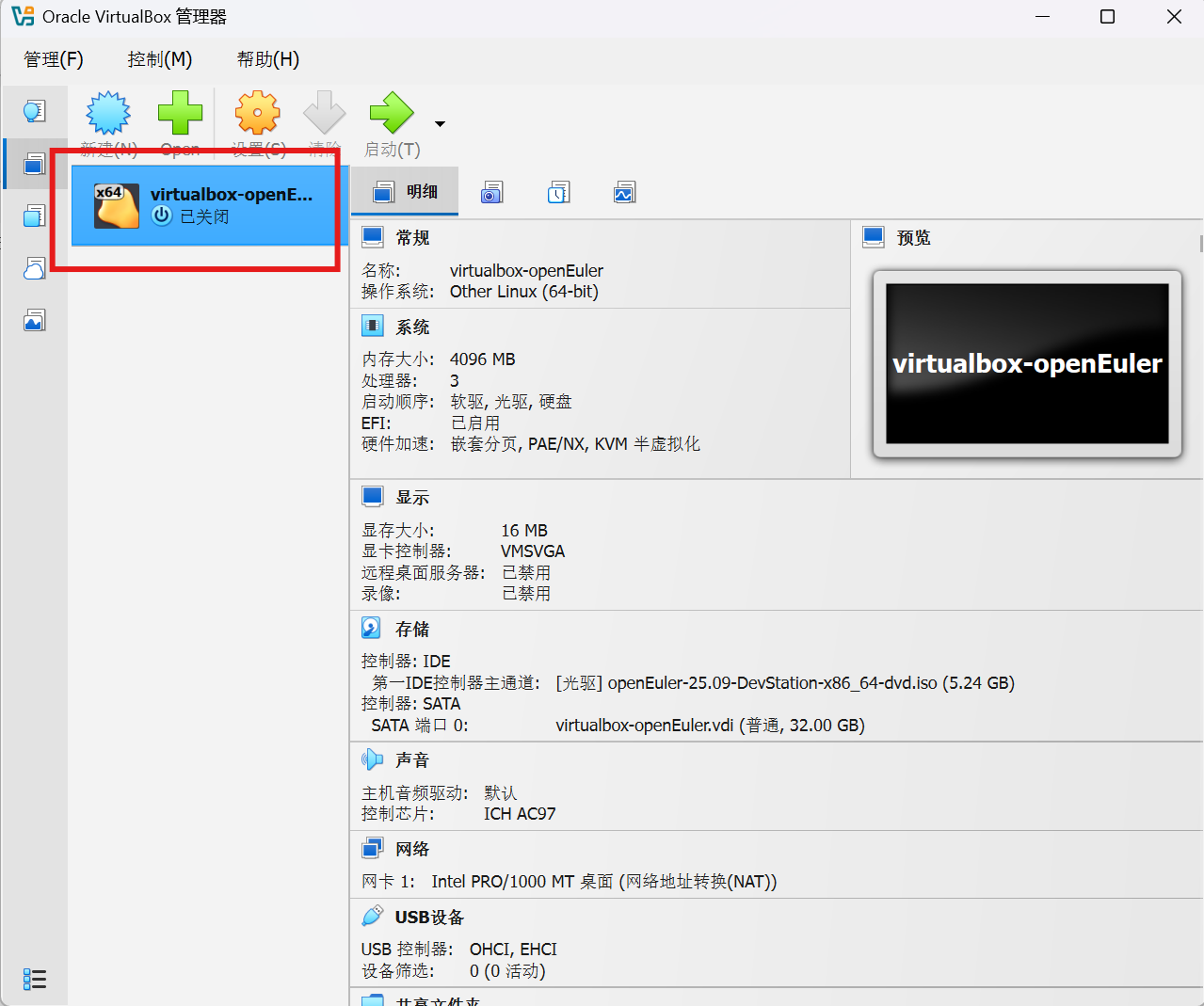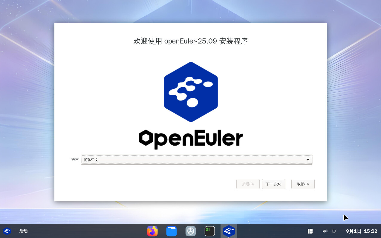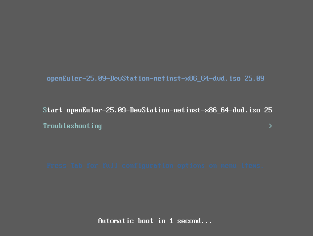 - Start openEuler-25.09-DevStation-x86_64-dvd.iso 25.09 —— 默认选项。