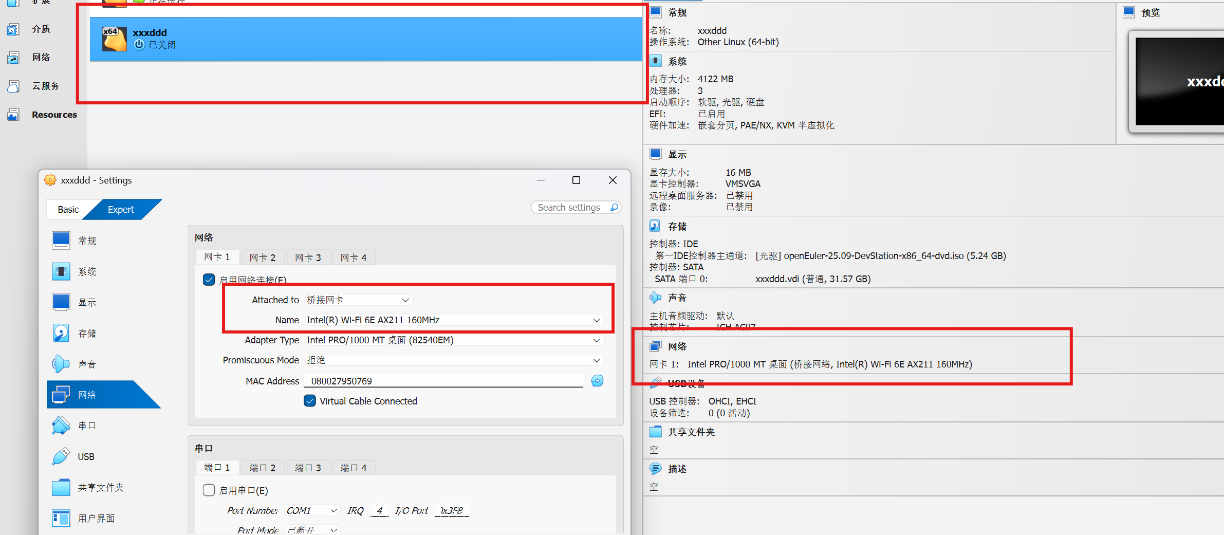 - 桥接模式:确保选择的桥接网卡是主机当前正在使用的物理网卡
