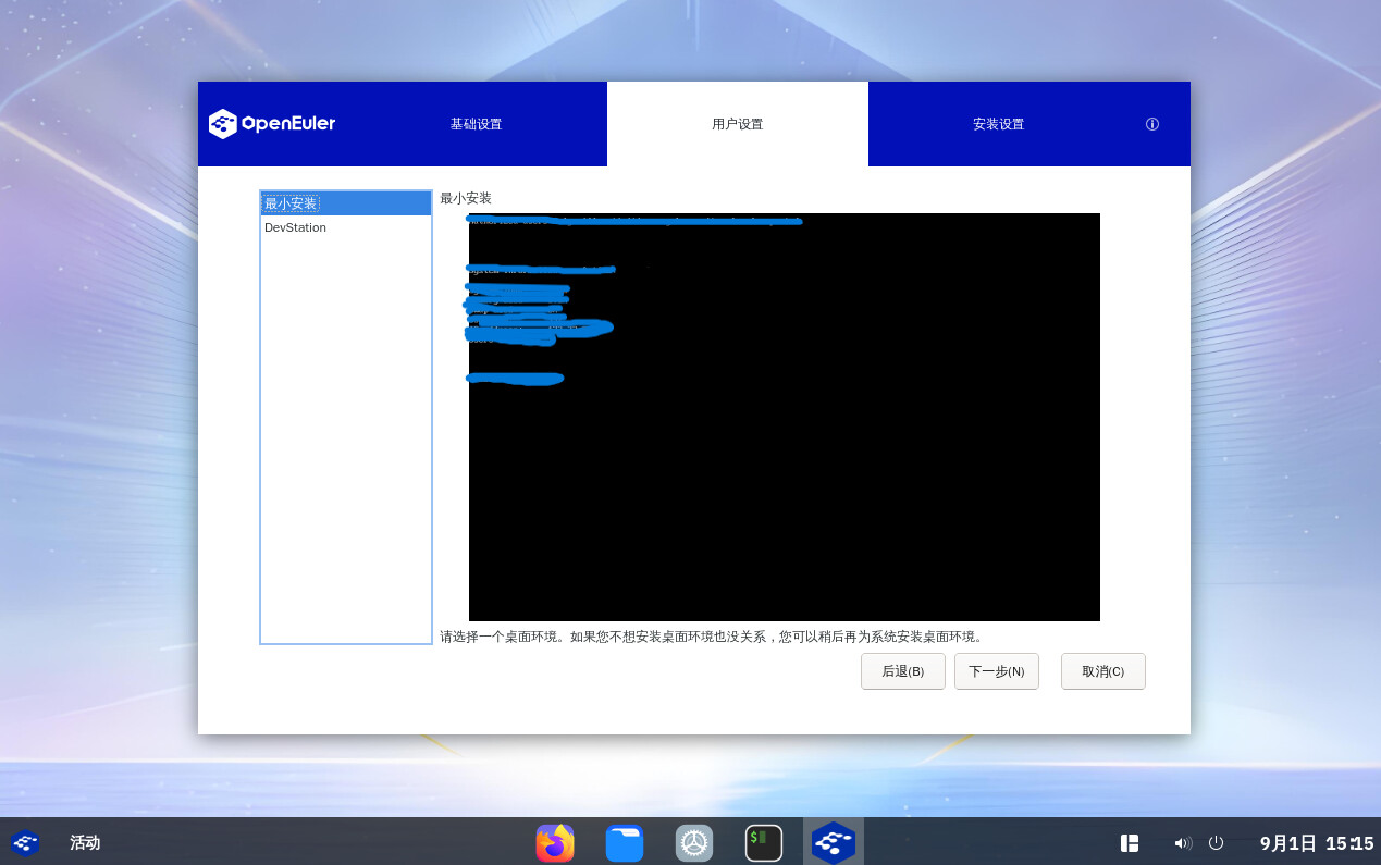 在“用户设置”页面中选择“DevStation”,指定需要安装的软件包。