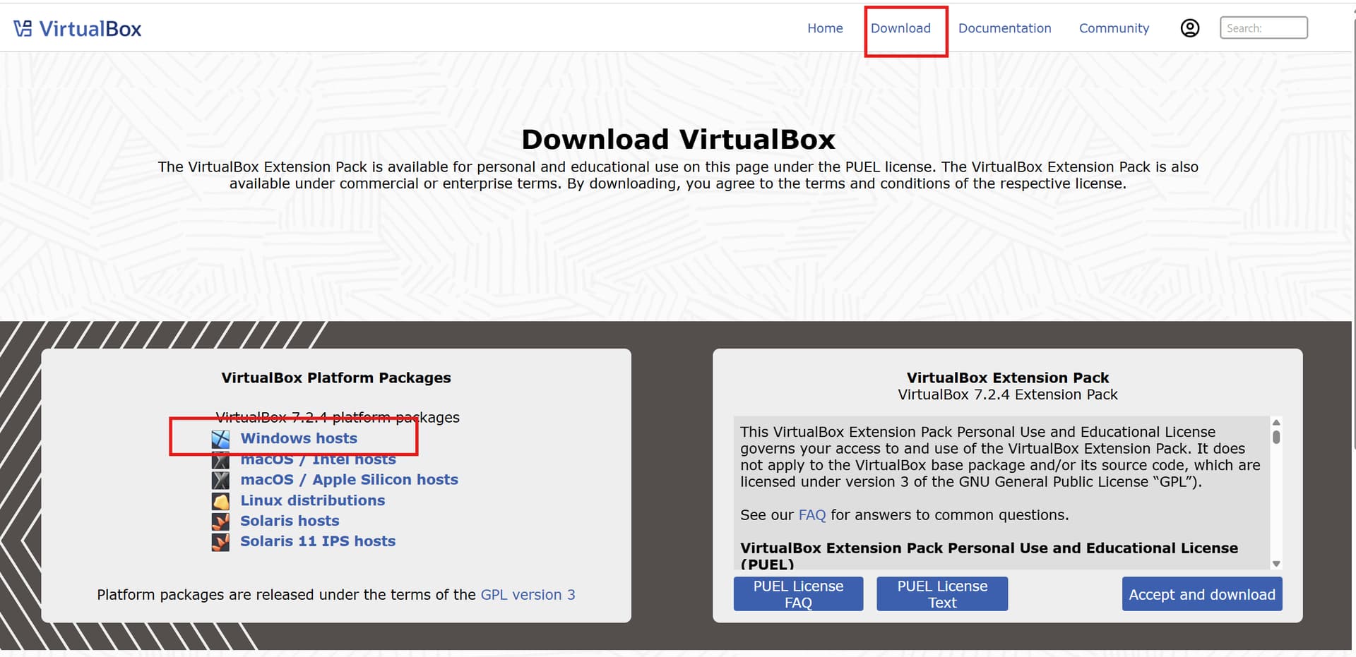 进入virtualbox官网,在Download栏目下选择Windows hosts下载