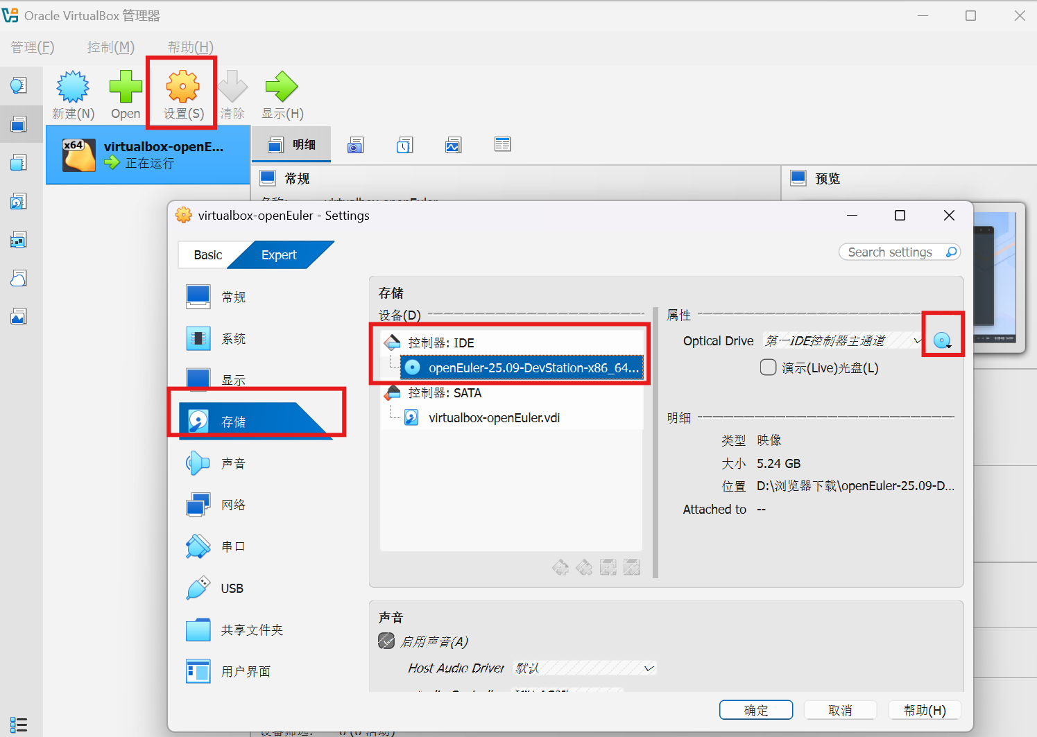 移除iso镜像文件:操作如下:设置->存储->控制器:IDE->Remove Disk From Virtual Drive