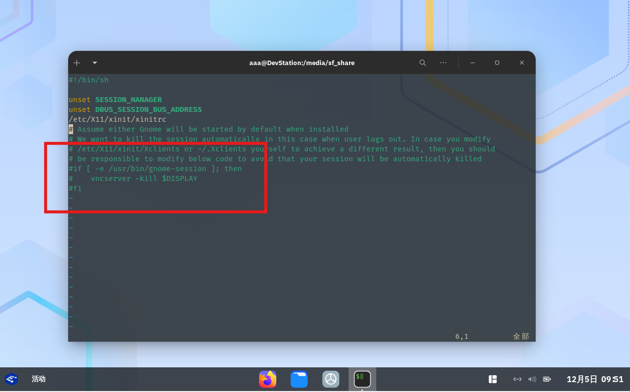 例如:用户名为aaa,则路径为 /home/aaa/.vnc/xstartup