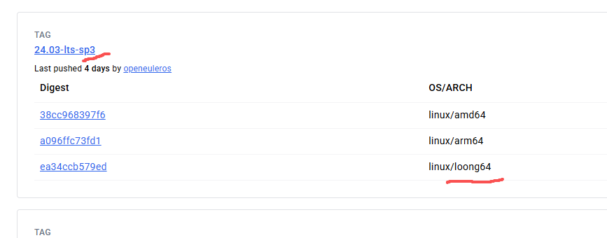 然后dockerhub上只有sp3的docker镜像有linux/loong64架构镜像
