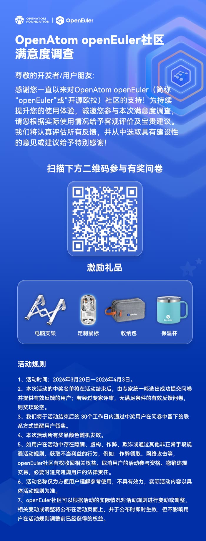 有奖调研|您的声音很重要!诚邀您参与openEuler社区满意度调查